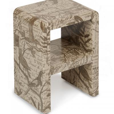 The bold proportions of the waterfall table with its rounded corners offers a sturdy base for the wrapped linen and lacquer finish. Designed to use as a table but also sturdy enough to substitute in as a seat.